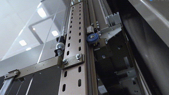 为了解决空间问题,eHome采用强驱曳引结构,无配重块,依靠机械力强力拉动,节省配重块在井道内占用的空间,实现井道利用率提升至57%,而传统别墅梯仅有40%-48%。双折门设计使轿厢面积更大。