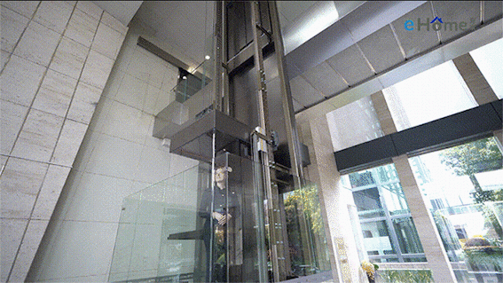 专业服务豪宅的eHome在这方面处理得相当到位,静音风扇的设计让轿厢内噪音更小,电梯部件运行噪音控制在55dB以下,相当于台式电脑主机运行的声音